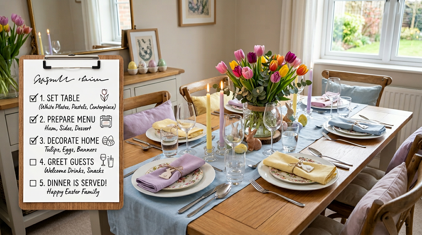 Hosting Easter at home should feel rewarding, not overwhelming. This guide walks you step by step from setting the date and style to a relaxed meal and a table everyone remembers.